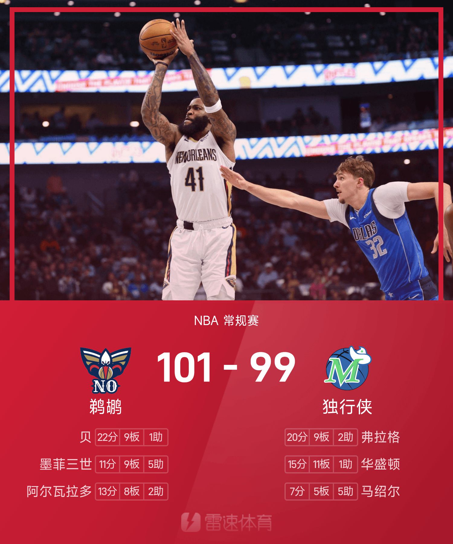 ในตอนท้ายของเกม Mavericks แพ้ Pelicans 99-101