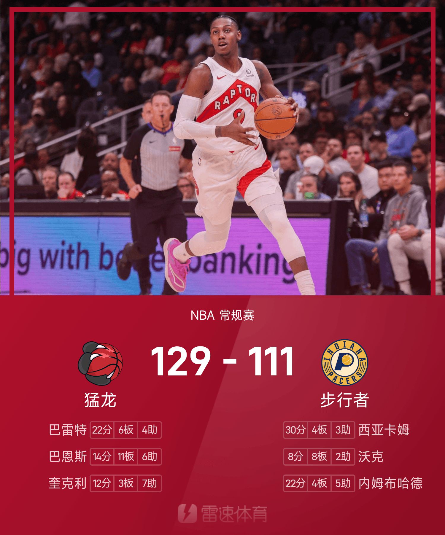 Raptors 129-111 Pacers