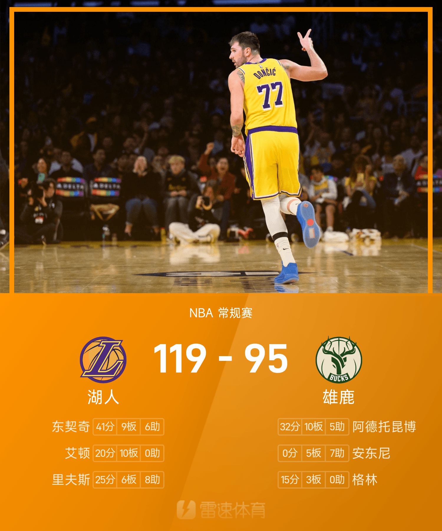 Lakers 119-95 Bucks