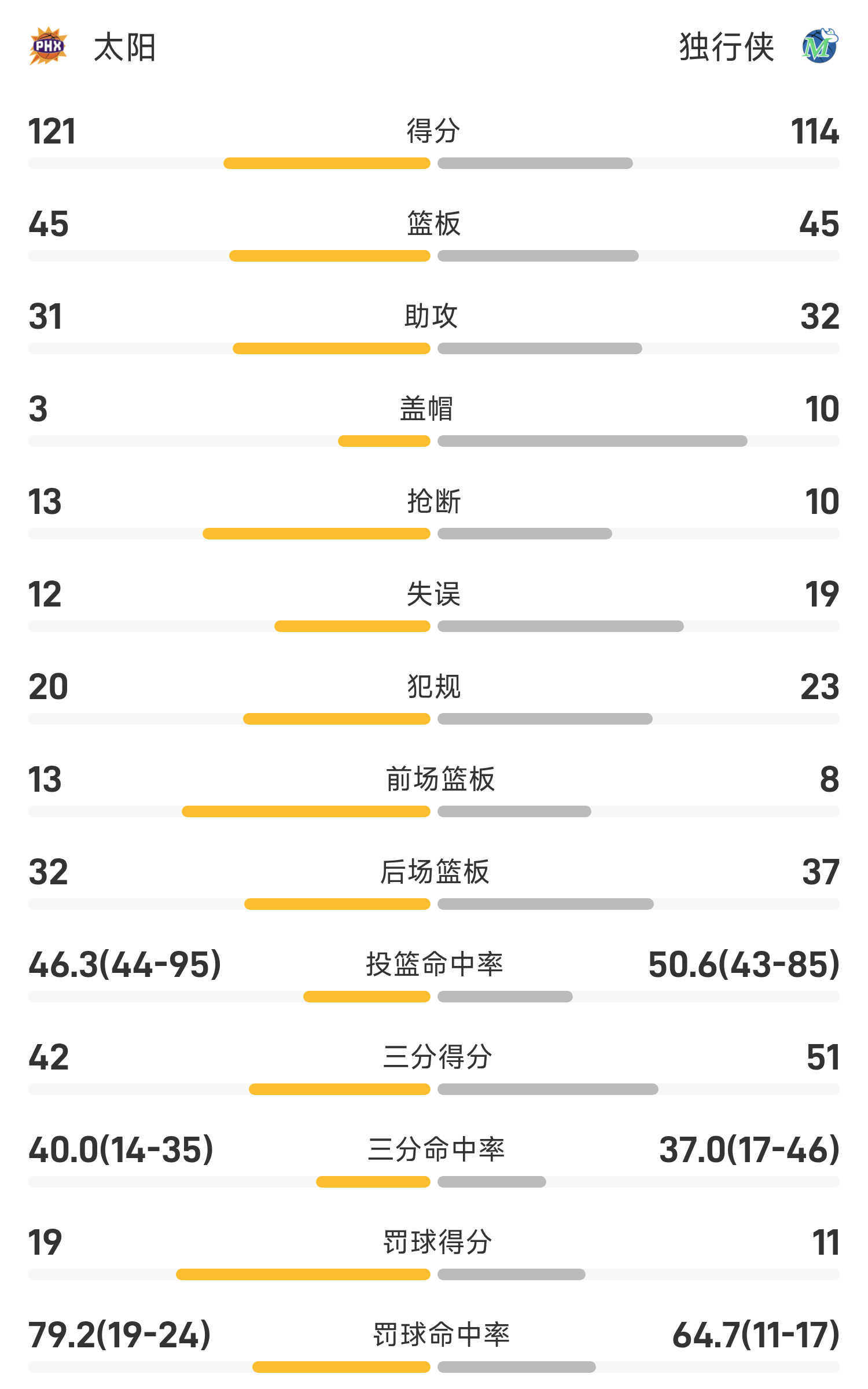 ในตอนท้ายของเกม Mavericks แพ้ Suns 114-122