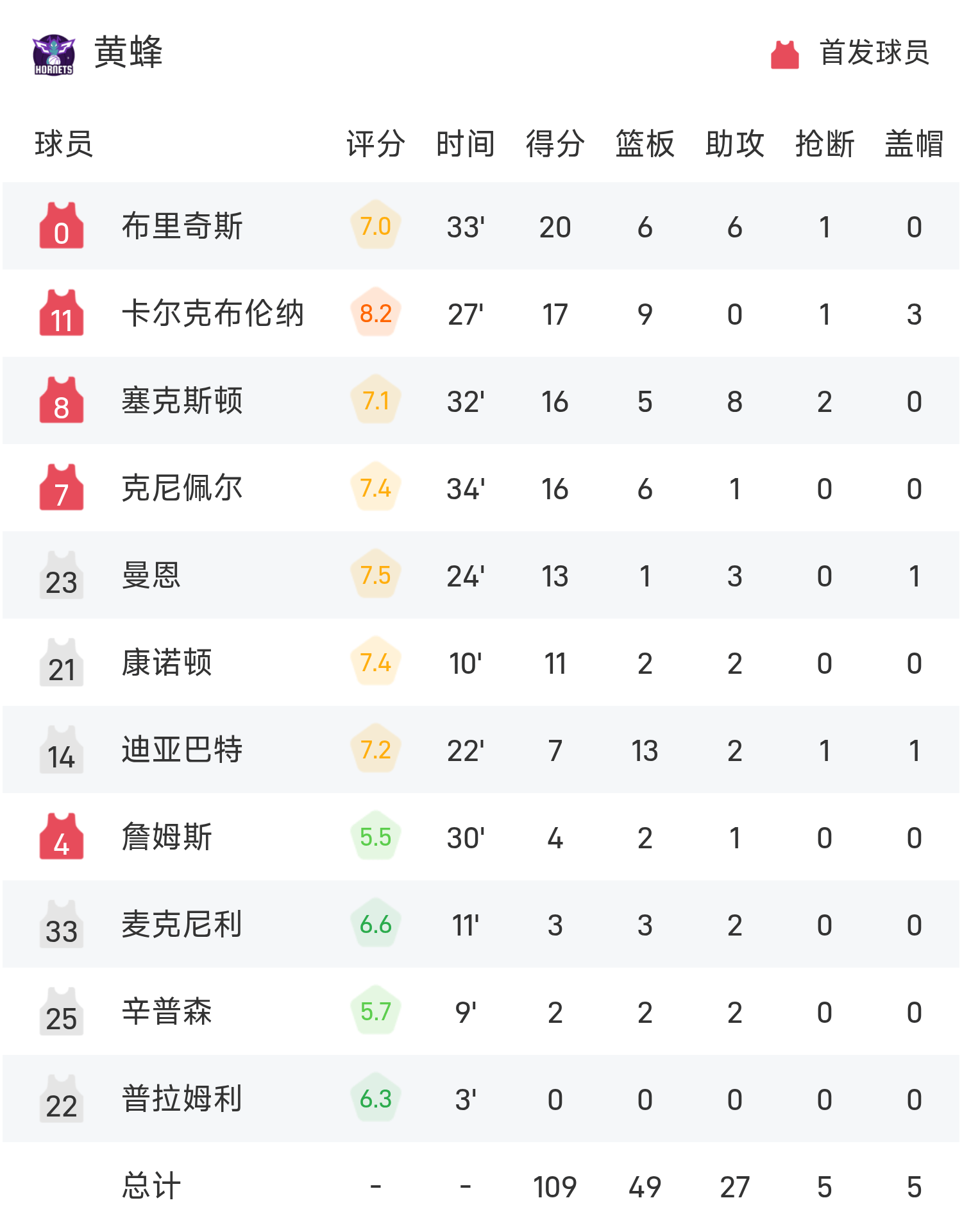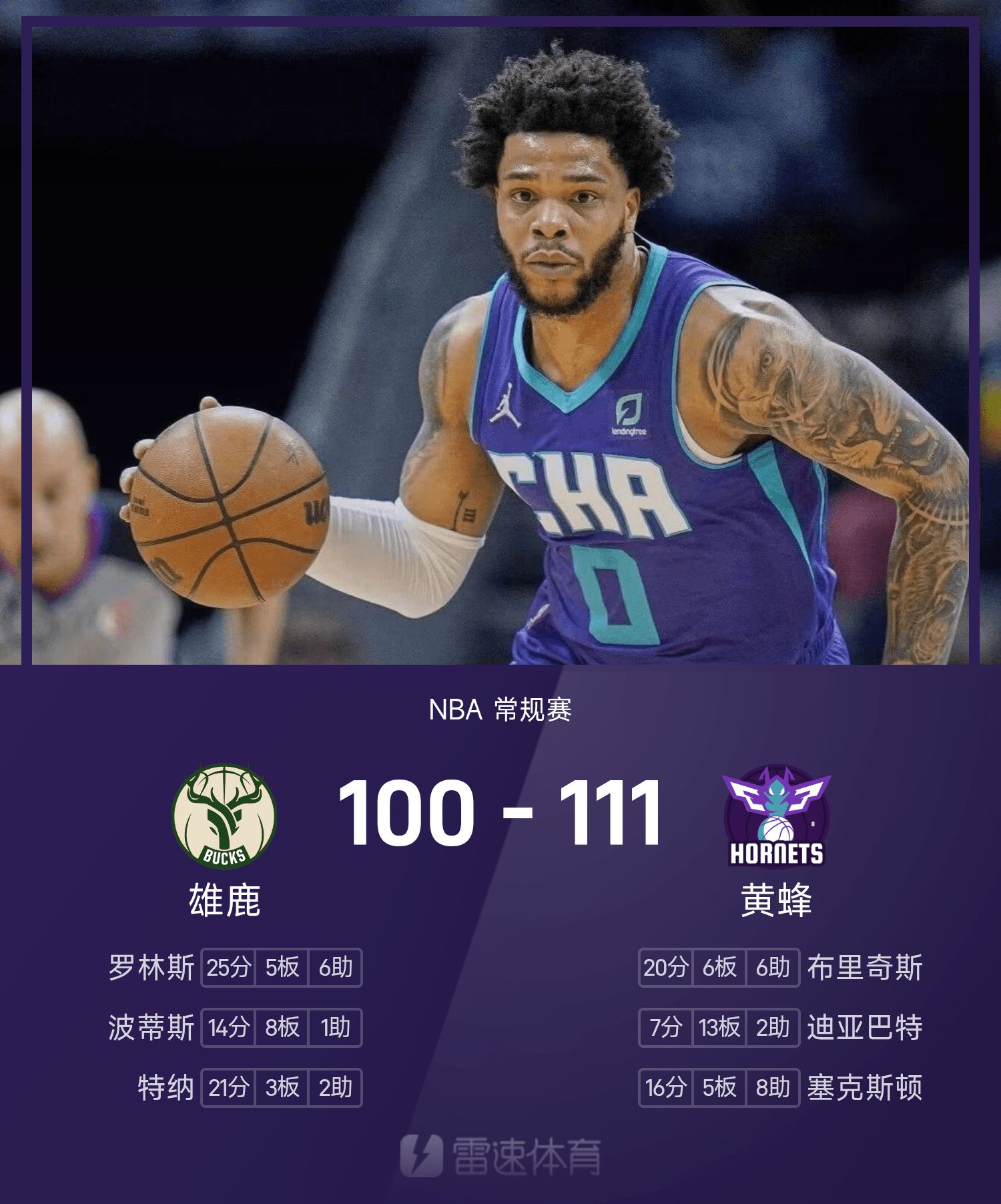ในตอนท้ายของเกม ฮอร์เน็ตส์ เอาชนะ บัคส์ 111-100