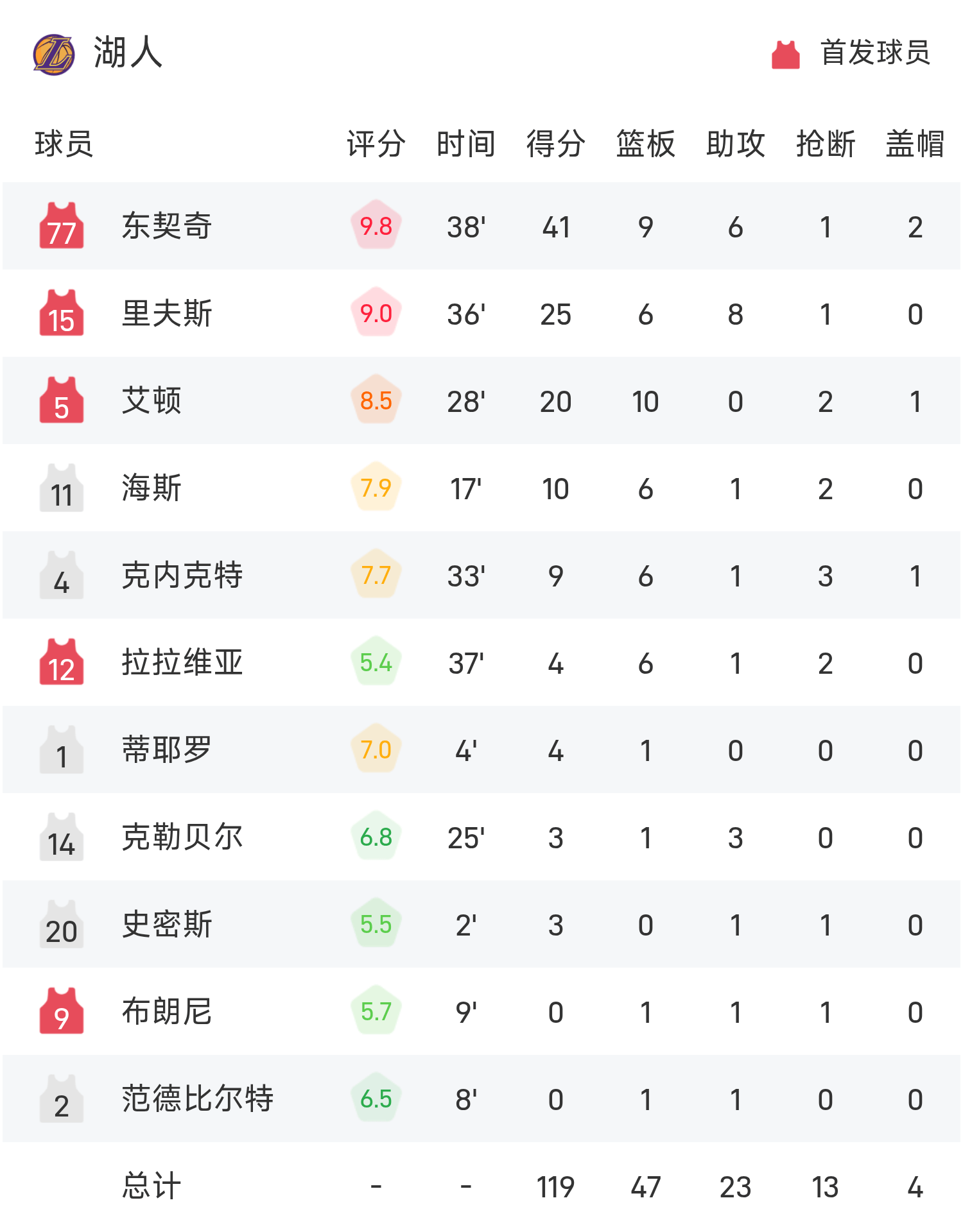 ดอนซิกทำคะแนนสูงสุดในเกม 41 แต้ม 9 รีบาวด์ และ 6 แอสซิสต์ นำทีมเลเกอร์สคว้าชัยชนะ Antetokounmpo ยิง 32+10 อย่างไร้ผล