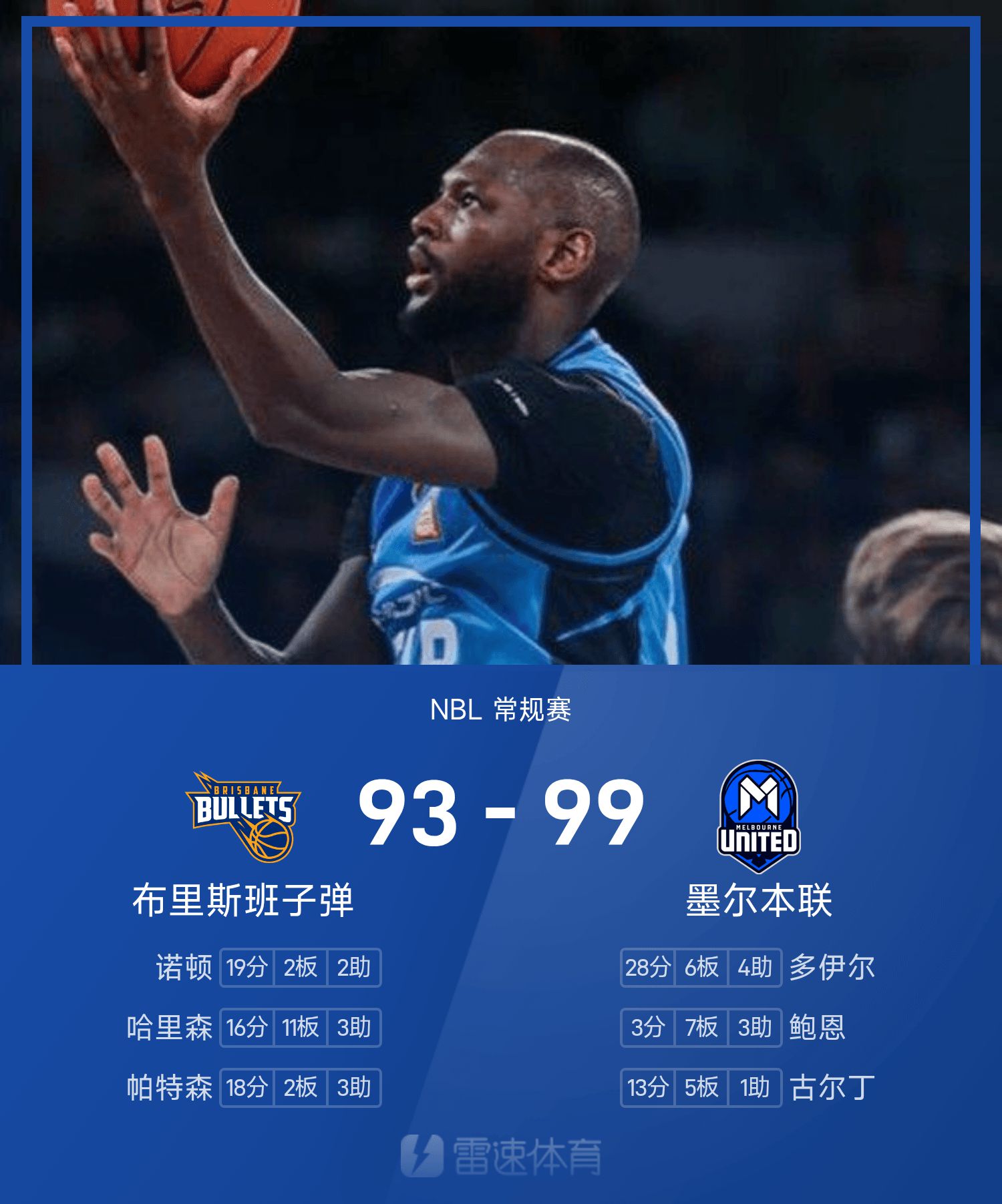 ดอยล์ทำคะแนนสูงสุดในเกมได้ 28 แต้ม 6 รีบาวน์และ 4 แอสซิสต์ นำเมลเบิร์นยูไนเต็ดคว้าชัยชนะ