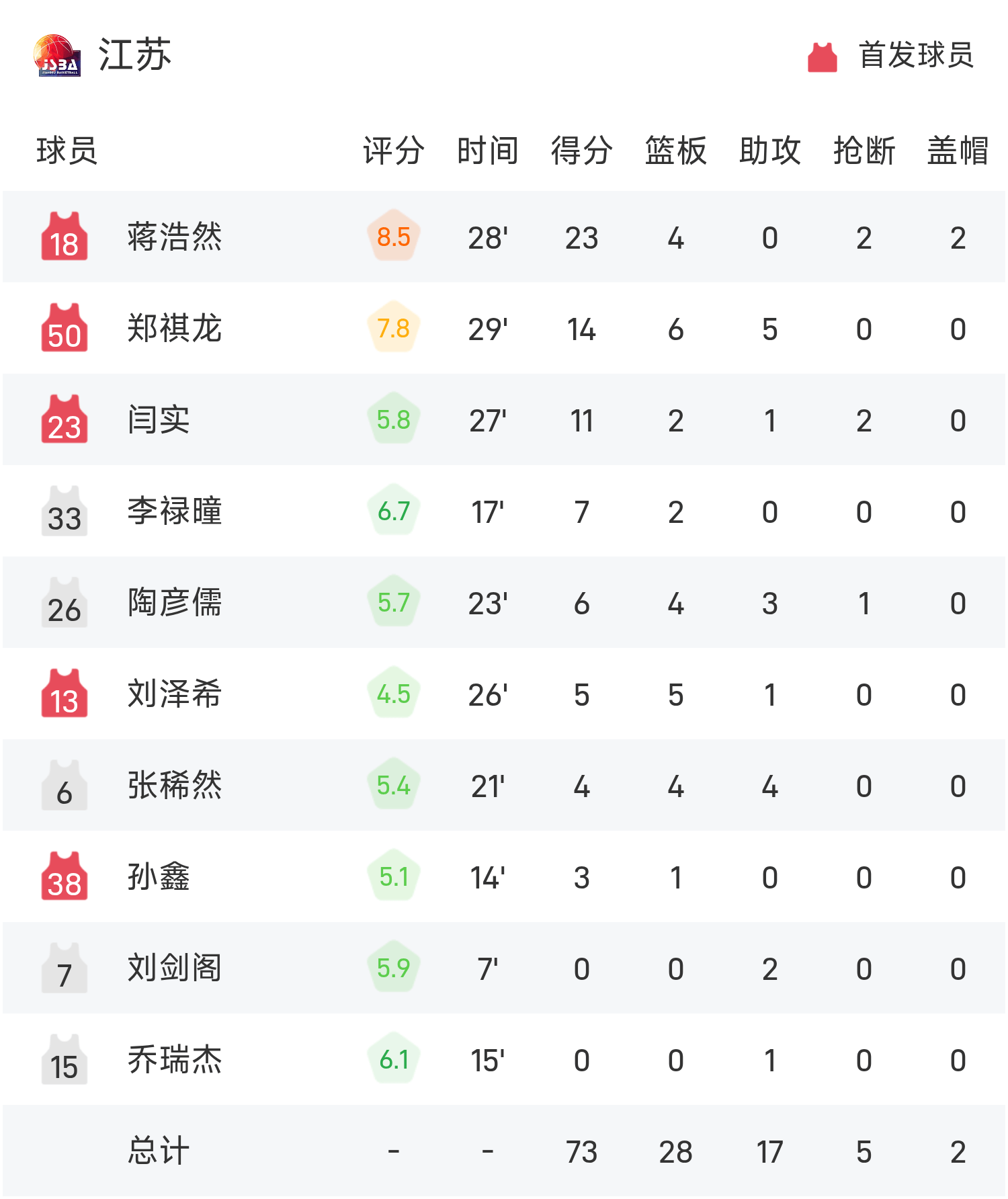 รายงานเกมบาสเก็ตบอลชายกีฬาแห่งชาติ: ซูเจี๋ยทำคะแนน 29 แต้มกวางตุ้งพลิกกลับเอาชนะเจียงซู 96-73