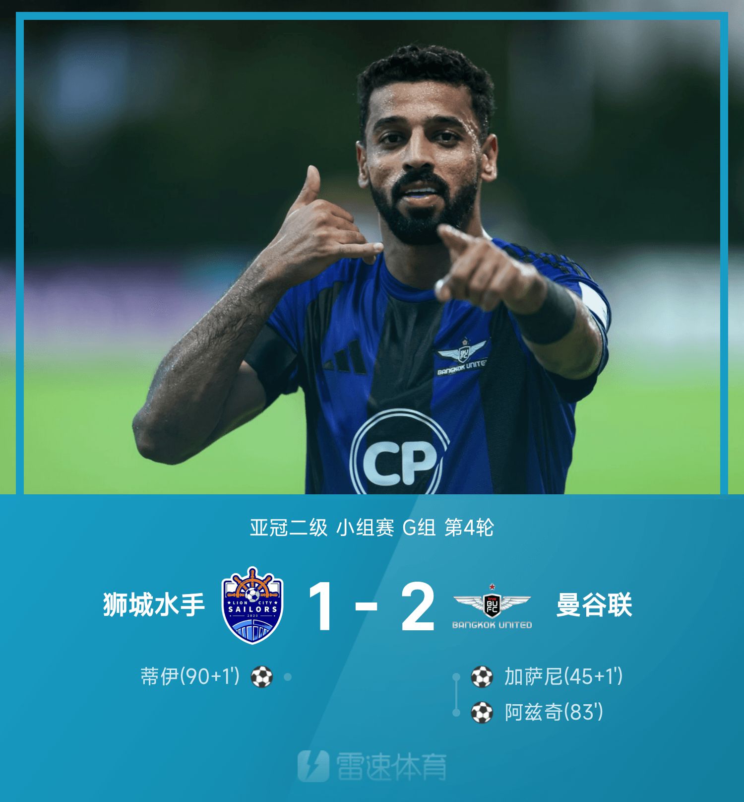 รายงานการแข่งขันระดับสองของ AFC Champions League : กาสซานี และ อาซิก ทำประตู แบงค็อก ยูไนเต็ด 2-1 สิงโต ซิตี้ มาริเนอร์ส