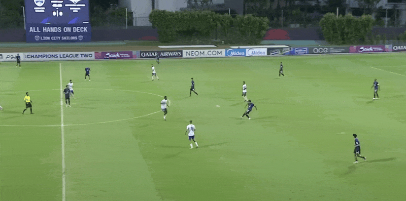 รายชื่อผู้เล่นตัวจริงของ Lion City Mariners: 25-Susak, 26-Wright, 4-Datkovic, 5-Chen Hanwei (90'31-Rasak), 30-Azman (58'15-Song Yirong), 29-Costa, 9-Tee, 10-แรมเซลาล, 6-เอ็นเดงเก้ (74'16-เซฮิน), 8-ปิแรส (74 ฟุต 7-อานุล), 18-โลเปซ