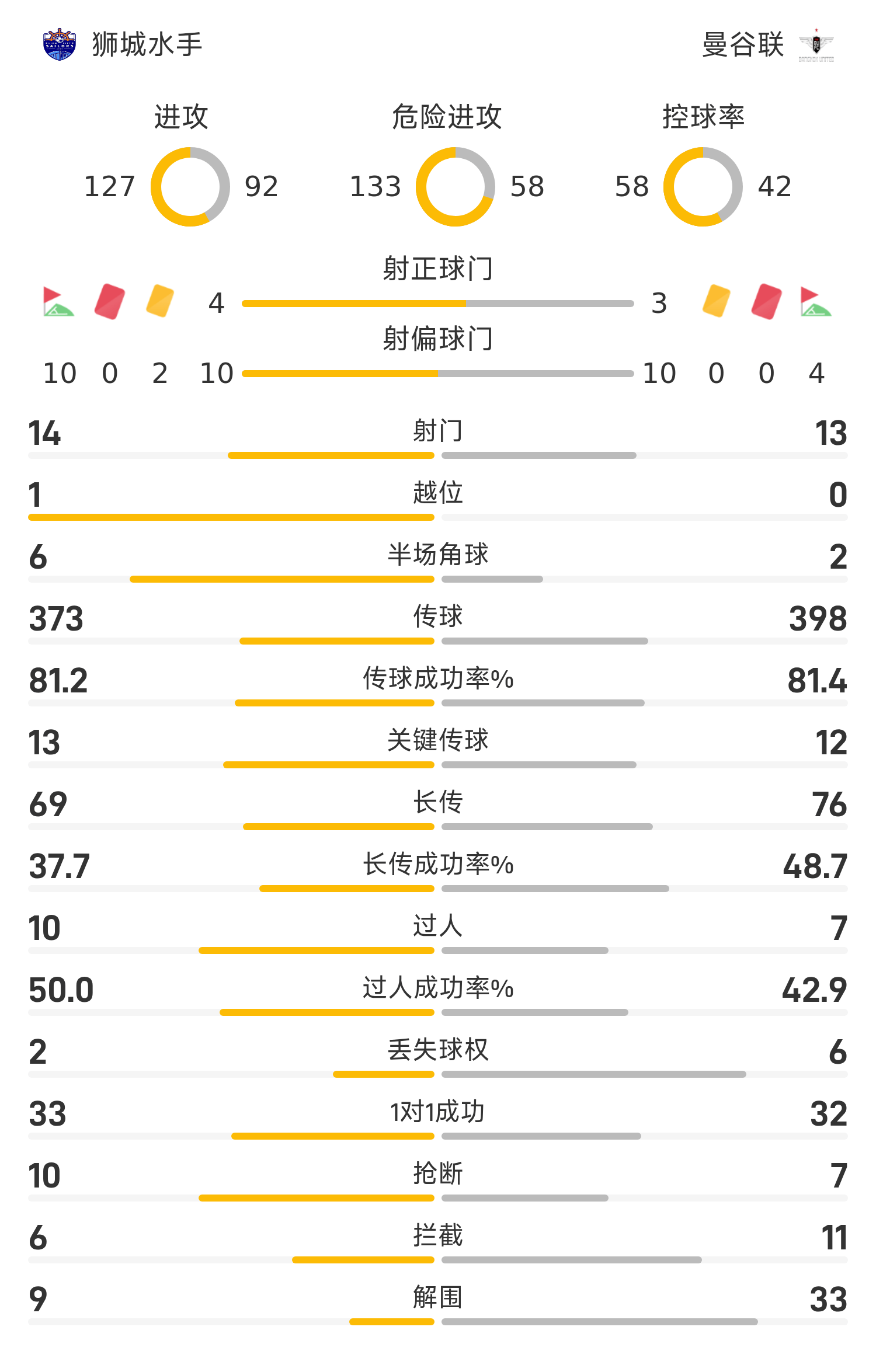 แบงค็อก ยูไนเต็ด รายชื่อผู้เล่นตัวจริง: 38-ชินพร, 29-ปู่ฮวาทง, 6-นิติบอน, 21-อาฮาน, 43-สุรชัย, 33-โคโซวิช, 14-นากามูระ คยองยา, 7-อาจิ, 28-นาชา, 20-กันตาบัง, 17-จิ่วเฉิง เซิ่งหยา
