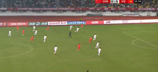 33’ ทีมจีนส่งบอลคุกคามจากทางซ้ายไปยังเขตโทษและผู้เล่นที่อยู่ข้างหน้าประตูก็ช้ากว่าก้าวหนึ่ง