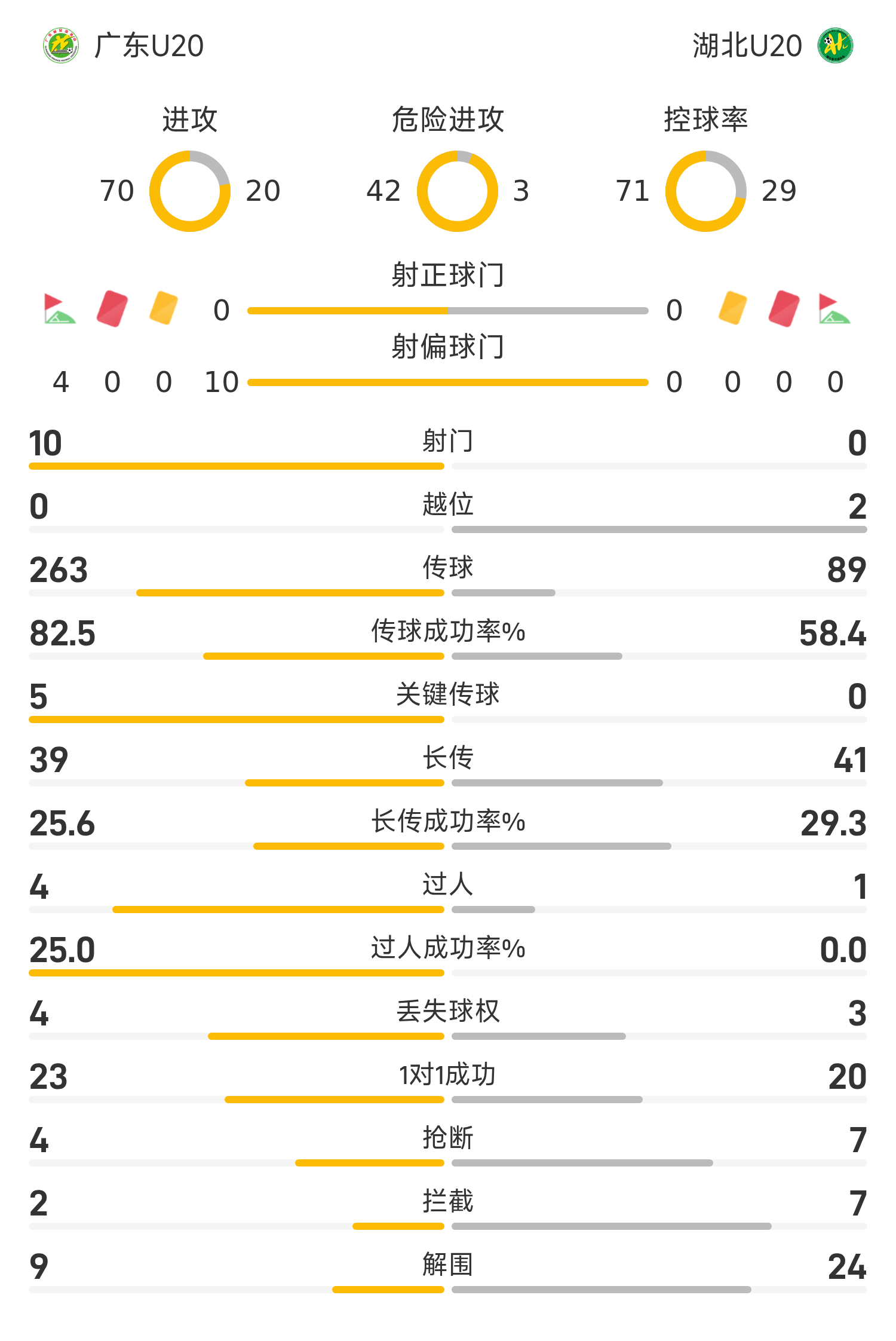 กวางตุ้ง U20 รายชื่อตัวจริง: 22-หยวน เจี้ยนรุ่ย, 4-หลี่ หมิงเจี๋ย, 55-หวง เค่อฉี, 3-หยวน ซีหนาน, 5-ไห่ เจี๋ยชิง, 6-หลวน เฉิง, 59-เหม่ย ซวยจุน, 16-จาง ซิซยง , 7-จง เหวิน, 57-หวัง ซีหยาง, 47-หวง ซีชุน