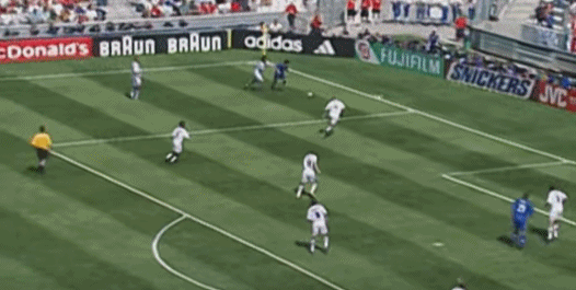 ต่อจากนั้น เดล ปิเอโร รับบอลจากทางซ้าย แกว่งไปทางซ้ายและขวา และสุดท้ายก็เหยียบบอลและล้มลงกับพื้น