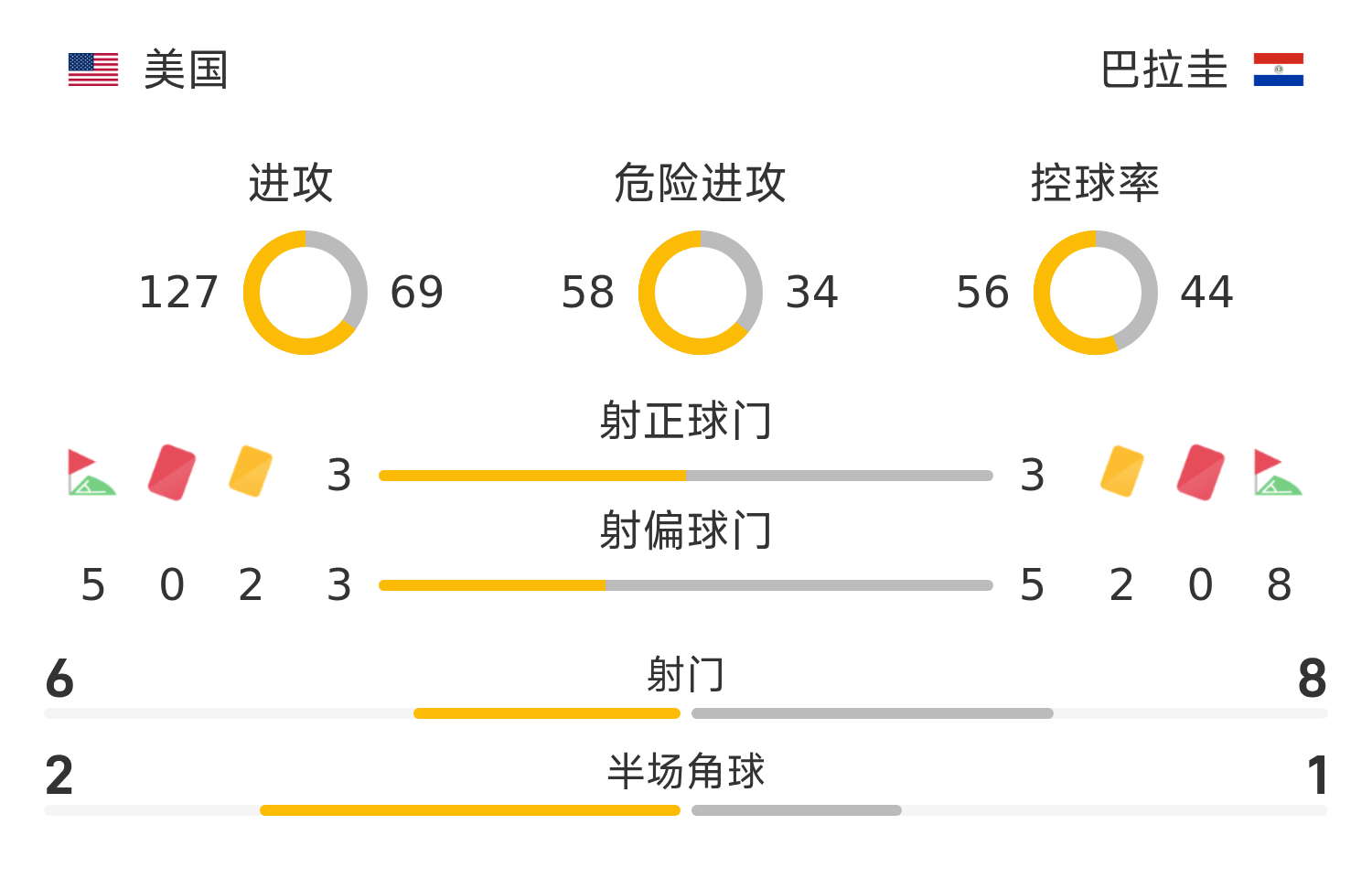 รายชื่อตัวจริงของปารากวัย: 12-กิล, 15-โกเมซ, 6-อลอนโซ่, 14-ริเวรอส, 4-กาเซเรส, 19-เอนซิโซ (72 ’20-โอเจดา), 16-โบบาดิลลา, 8-โกเมซ (80'26-โรเมโร), 10-อัลมิรอน, 11-กอนซาเลซ (61'7-โซซ่า), 18-อัลส์ (7 2'9-ซานาเบรีย)