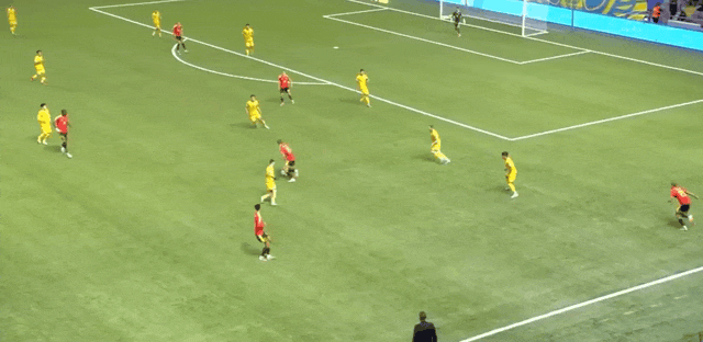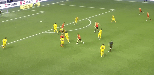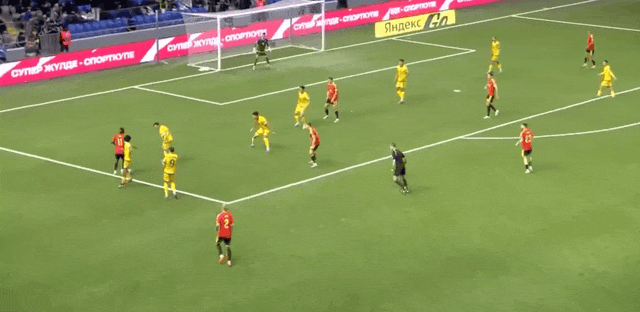 23' คาสตาญจ่ายบอลเข้าไปในเขตโทษ และอานาเบคอฟโหม่งอย่างทรงพลังของทรอสซาร์ดในพื้นที่สามวินาที