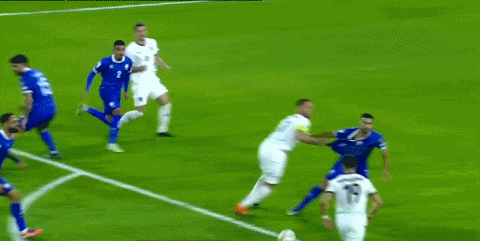 23' ซาบิตเซอร์จ่ายบอลในแนวทแยงไปยังจุดหลัง และพอชพลาดโหม่งไป