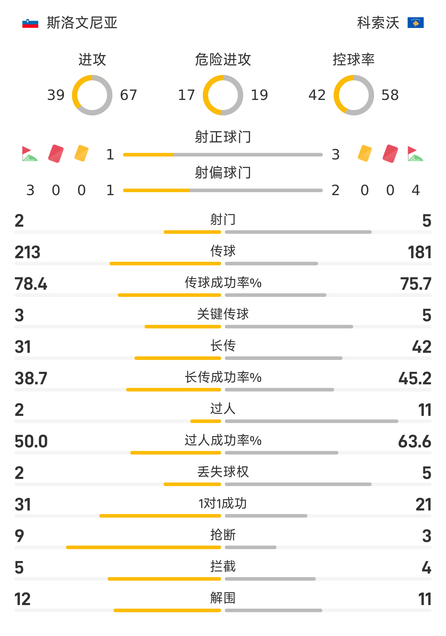 รายชื่อผู้เล่นตัวจริงของสโลวีเนีย: 1-Oblak, 23-Brekalo, 6-Bjor, 21-Drukusic, 13-Janza, 5-Stankovic, 10-Elsnik, 2-Kanikainik, 19 -Horvath, 9-Spolar, 18-Vepotnik