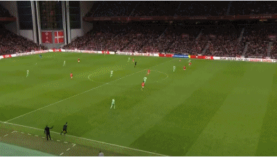 51' เดมส์จ่ายบอลสูงเข้าไปในเขตโทษ และวินเดอร์ยิงประตูในสามวินาที พื้นที่ถูกรบกวน