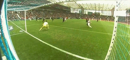 วอลเลย์ของ 40'B หน้าประตูถูกกองหลังสกัดกั้นและออกนอกเส้นหลัง
