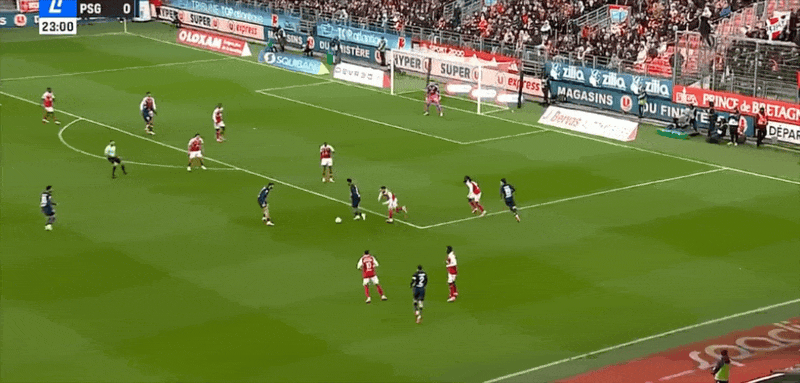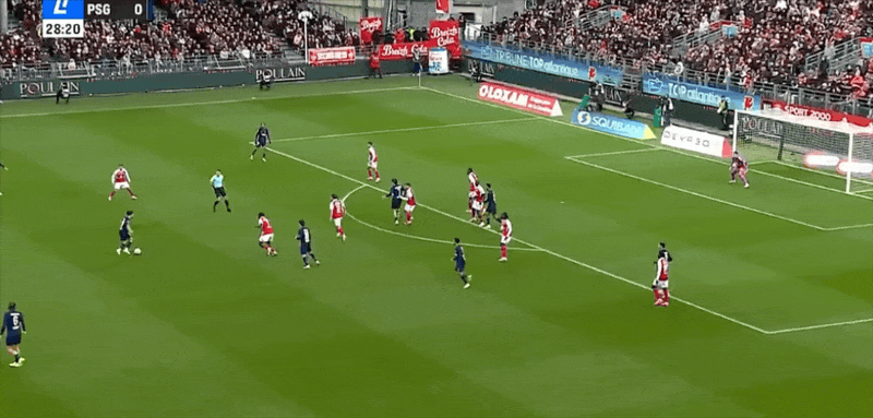 24' ปารีสเล่นได้อย่างราบรื่นในแดนหน้า และมายูลูเผชิญหน้ากับผู้รักษาประตูด้วยการยิงนัดเดียวและได้รับการช่วยเหลือ