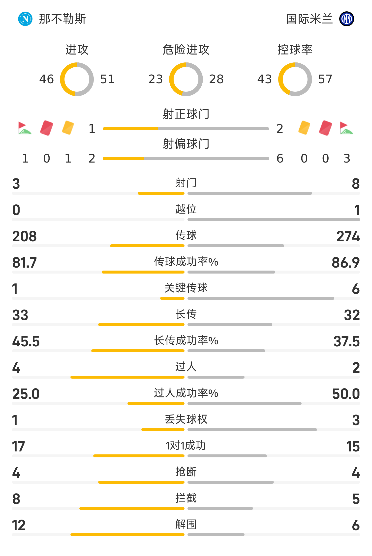 15’ เลาตาโรมีโอกาสที่ดีเยี่ยมในโซนสามวินาที และผู้รักษาประตูเนเปิลส์เซฟลูกยิงได้
