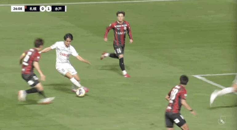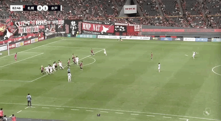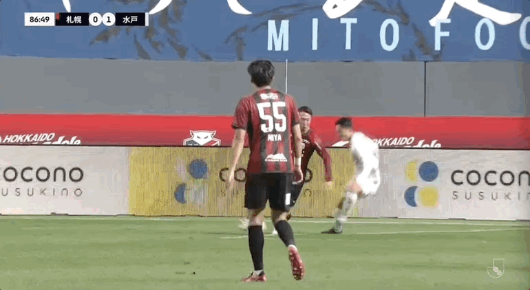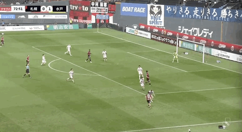 53' ซัปโปโรเคลื่อนบอลตามบอลไป แต่ยังคงอดทนผ่านบอลลงสนาม