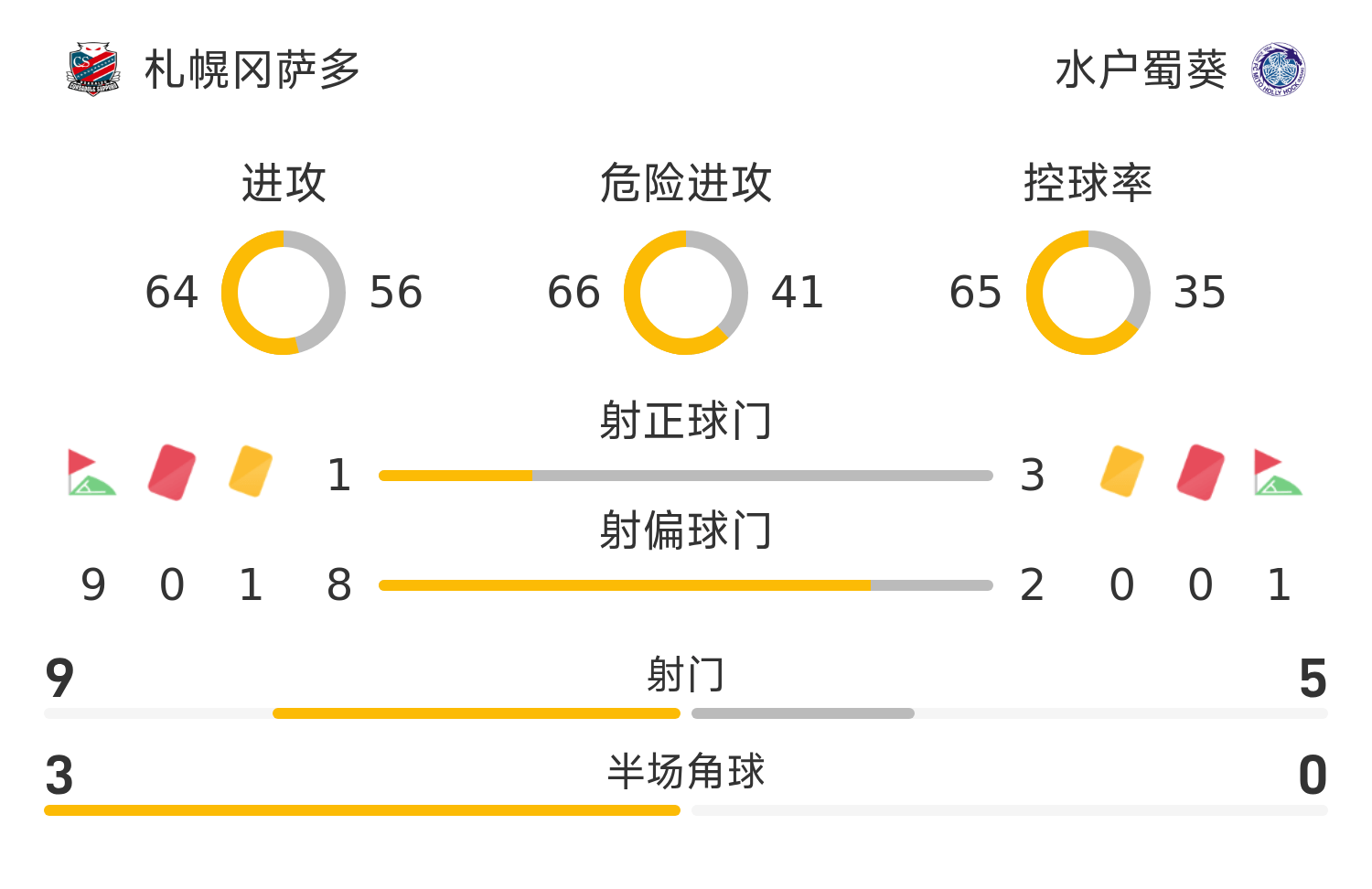40'ความช่วยเหลือจากต่างประเทศของซัปโปโรทำผิดพลาดในการหยุดบอลในโซนสามวินาทีแล้วละเมิดกฎอย่างรุนแรง