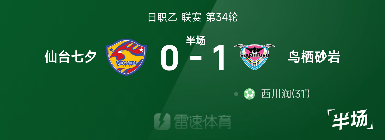 ครึ่งหลังอาชีพชาวญี่ปุ่น ครึ่งหลัง นิชิคาวะ จุน ยิงประตู โทสุ สโตนสโตน ชั่วคราว 1-0 เซนได ทานาบาตะ