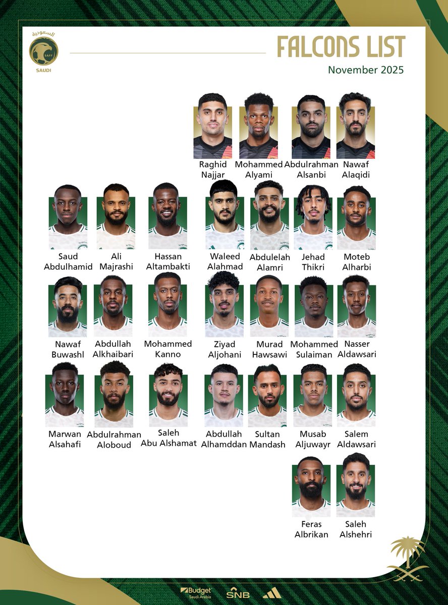 6686 Sports รายงานเมื่อวันที่ 7 พฤศจิกายนว่าทีมชาติซาอุดิอาระเบียประกาศรายชื่อสำหรับวันแข่งขันเดือนพฤศจิกายน ซาอุดีอาระเบียจะลงเล่นนัดกระชับมิตร 2 นัดกับไอวอรีโคสต์และแอลจีเรียที่สนามเหย้าในเมืองเจดดาห์