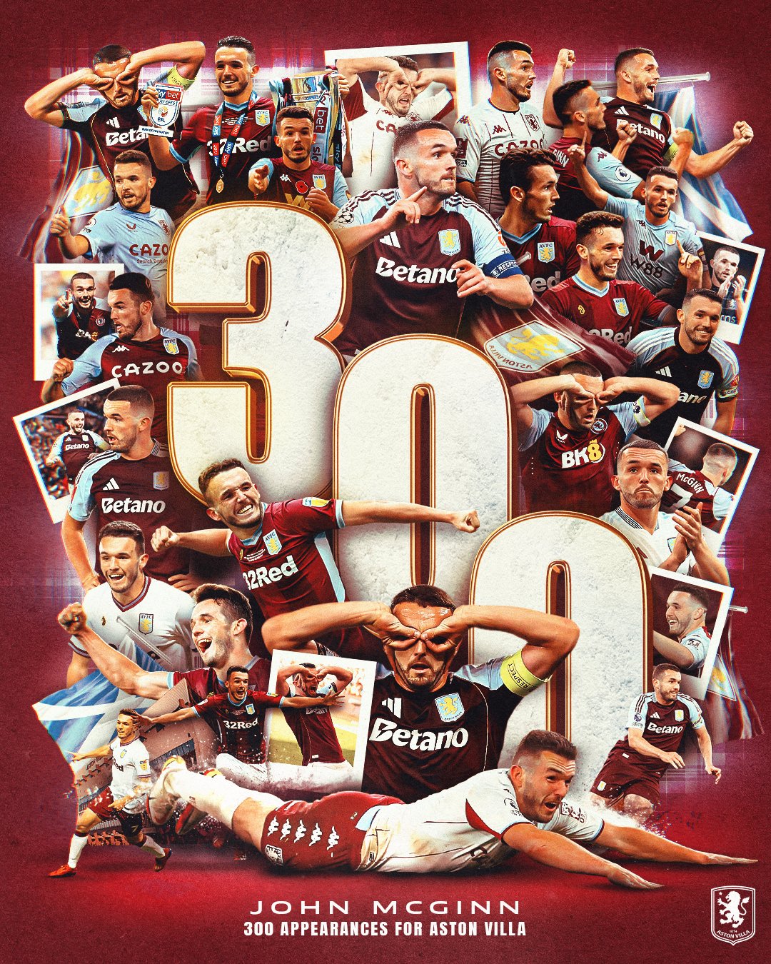 เปิดตัวนักเตะสำรองวันนี้ แม็คกินน์ต้อนรับความสำเร็จ 300 เกมในอาชีพของวิลล่า