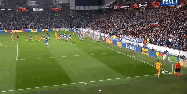 22’ ซูเลยิงประตูจากด้านนอก และผู้รักษาประตูของเรนเจอร์สก็เซฟบอลไว้จากเส้นหลัง