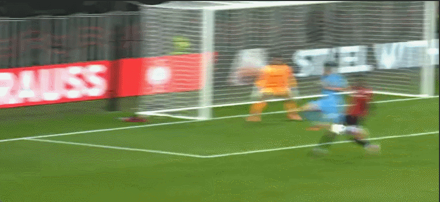77’ บูดูเวได้บอลนอกเขตสามวินาทีแล้วยิงจากด้านนอกทันที บอลข้ามคานและบินออกนอกเส้นหลัง