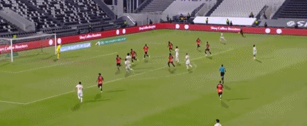 10' ดิอัลโลโหม่งเข้าประตู และผู้รักษาประตูพยายามดิ้นรนเพื่อรักษาบอลจากลูกโหม่ง เส้นหลัง