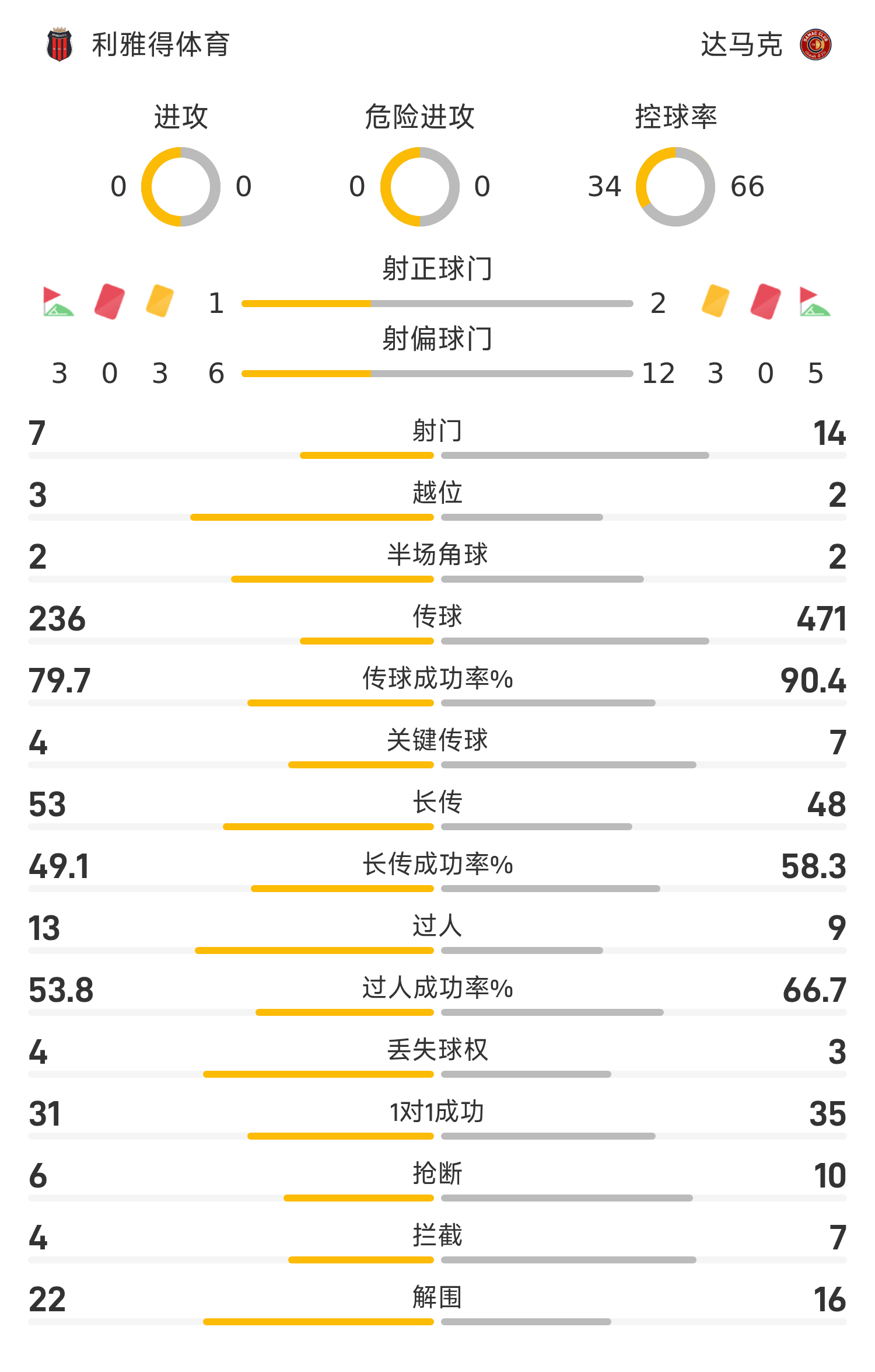 41’ ริยาดสปอร์ต ส่งบอลจากทางขวาไปยังเขตโทษ แต่ผู้เล่นที่อยู่ข้างหน้าประตูช้ากว่าเล็กน้อยและพลาดโอกาส